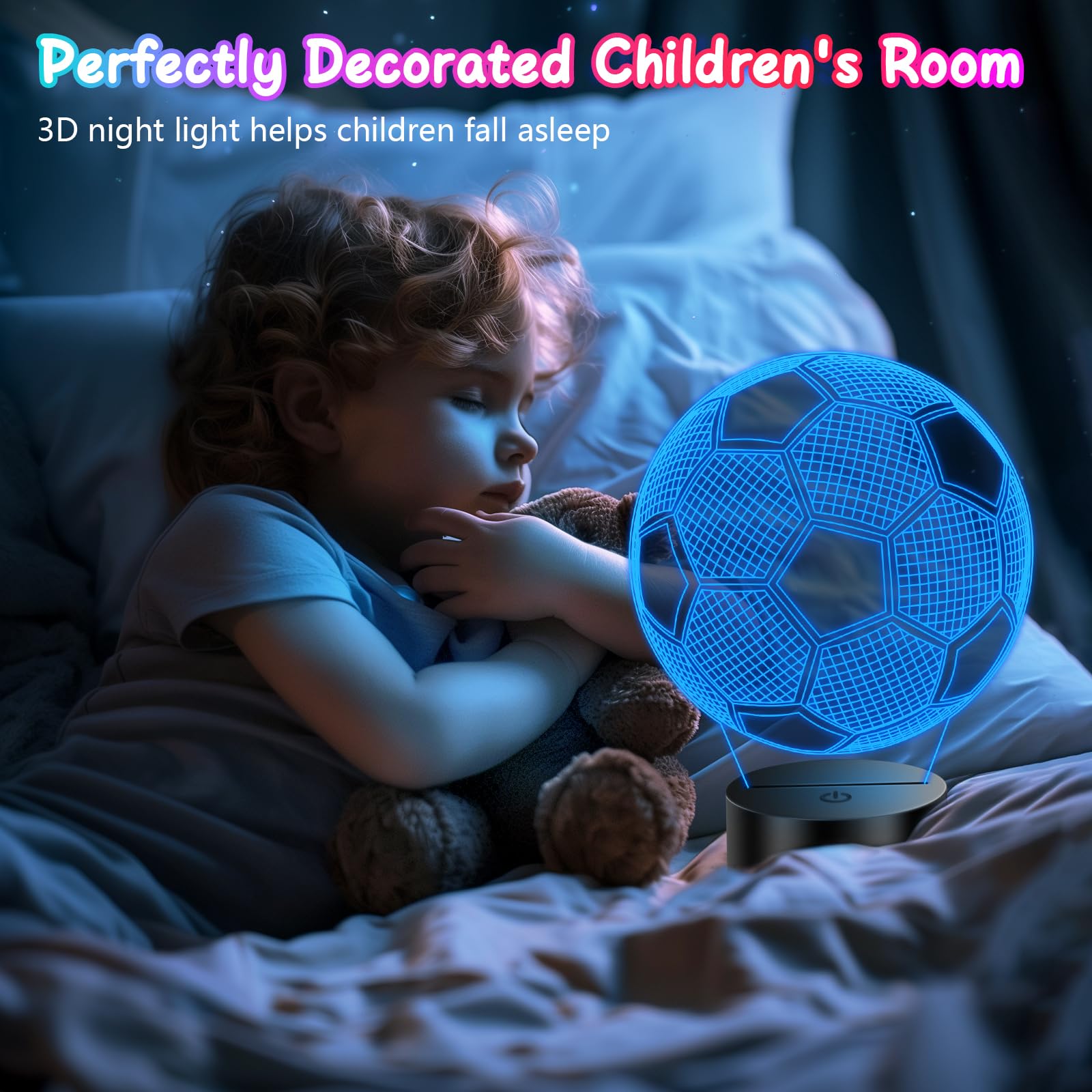 Veilleuse 3D Football Polemera - 16 Couleurs Changeantes - Cadeau Garçon 7-14 Ans - USB Ou Piles